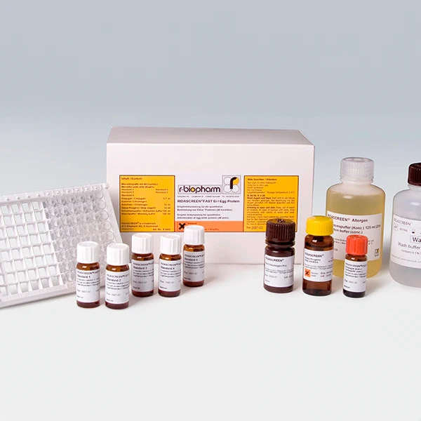 RIDASCREEN FAST Egg Protein är en sandwich ELISA för kvantifiering av äggprotein i livsmedel. Metoden är kalibrerad enligt NIST SRM 8445 äggpulver (hela ägg) och har ingen korsreaktion med kycklingkött.